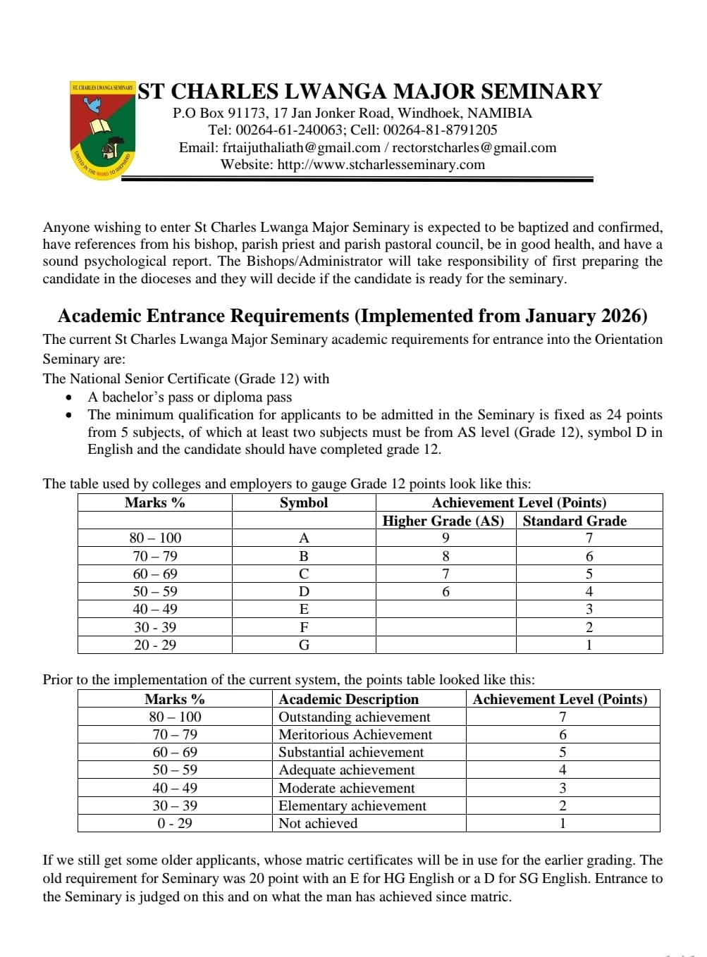 | 01 Oct | Requirement of Admission to Seminary |